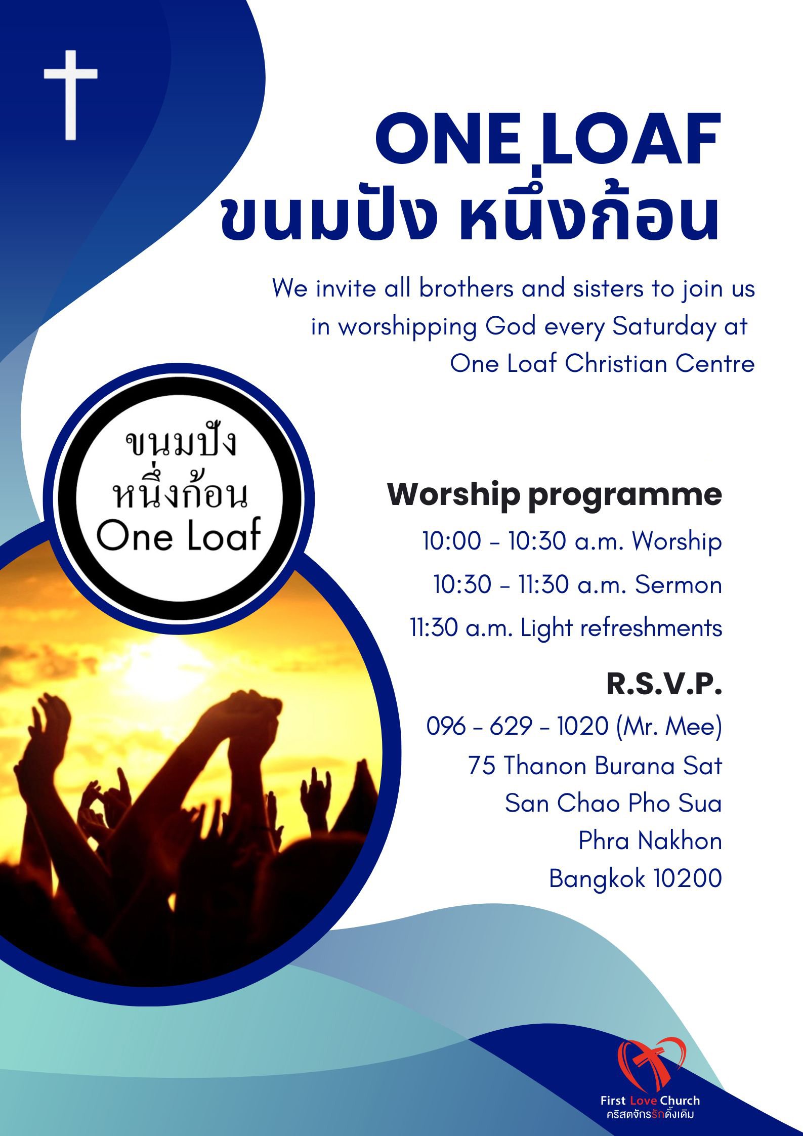 One Loaf Bangkok YouTube Channel @oneloafbkk is a compilation of Worship Songs in Thai, and also daily devotions and bible verses in both Thai and English. Background video set with nature views and Thai Worship songs, we hope that these will help you in your daily work with Jesus Christ. The YouTube channel also consist of playlists of sermons, worship concerts, worship songs, and other daily devotions from different churches.